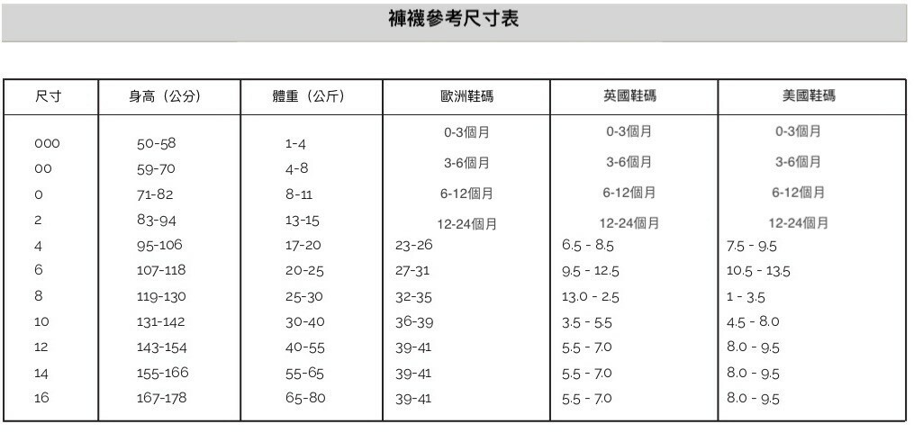 褲襪由於有褲檔的關係,須特別留意身高是否符合對應尺寸