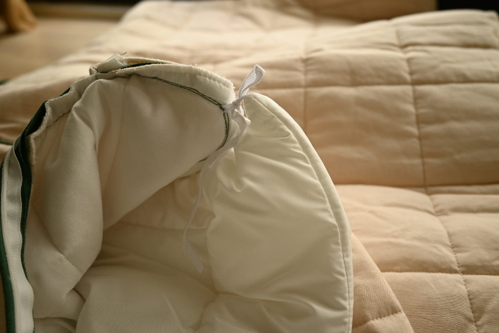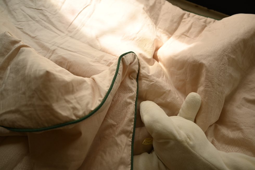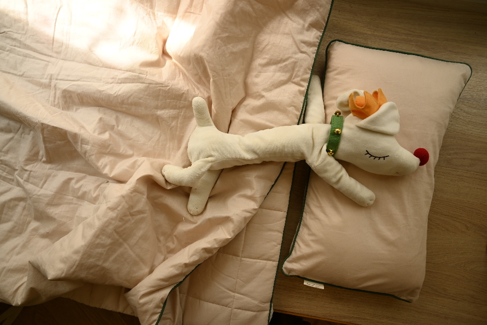 被子輕薄透氣,是親膚的有機棉,不刺癢不悶熱。