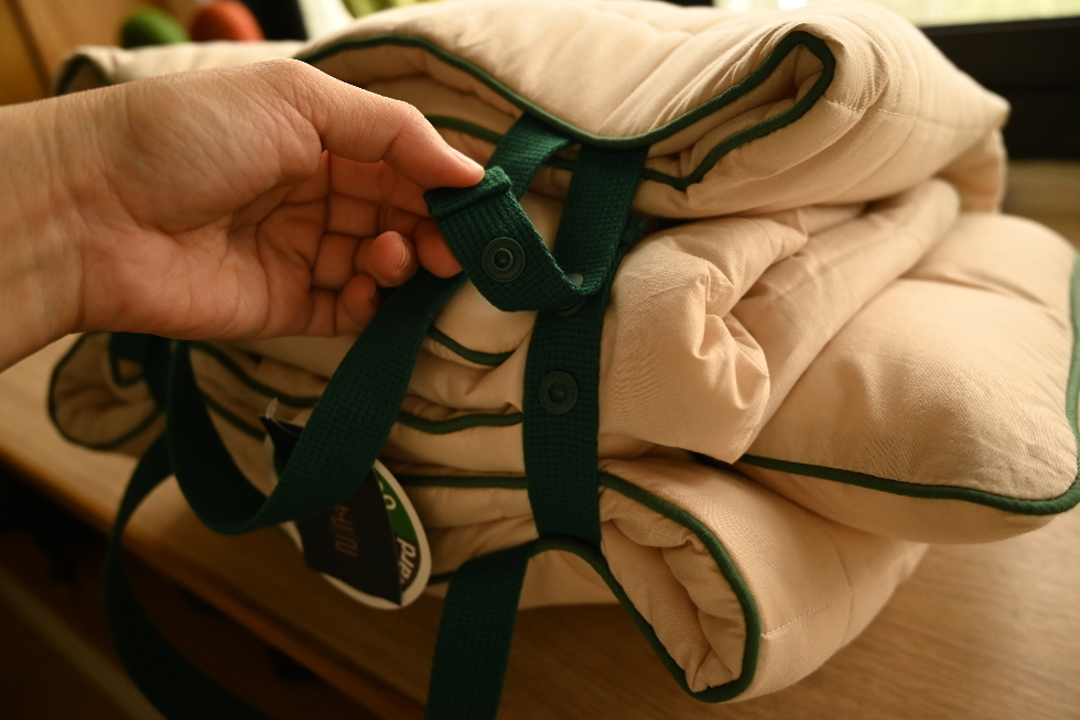 睡墊 4 個邊角都有綁帶可固定內墊。