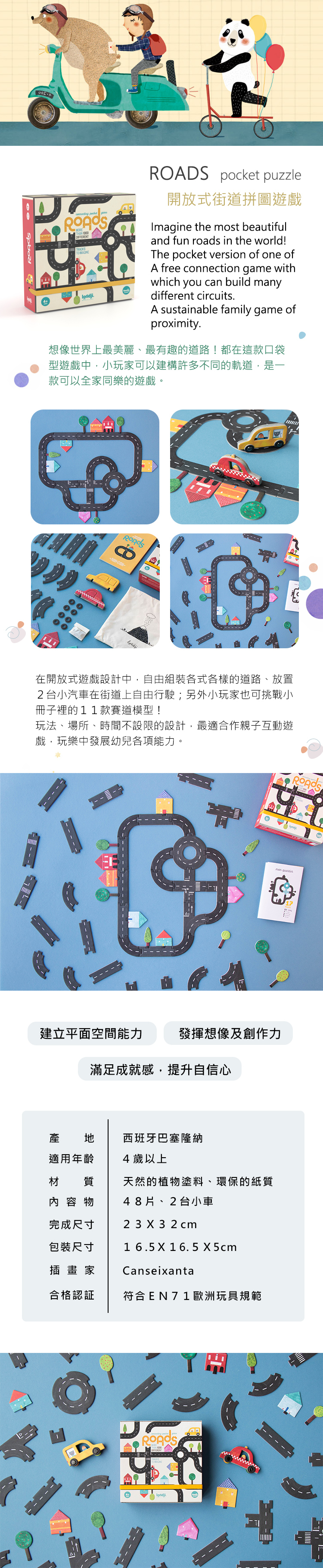 內容物:48片拼圖、2台車、1個收納袋