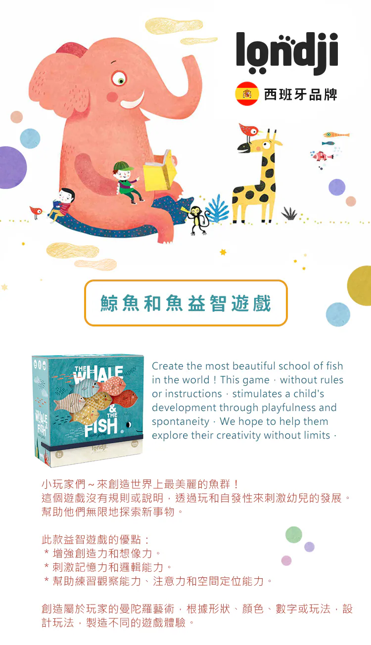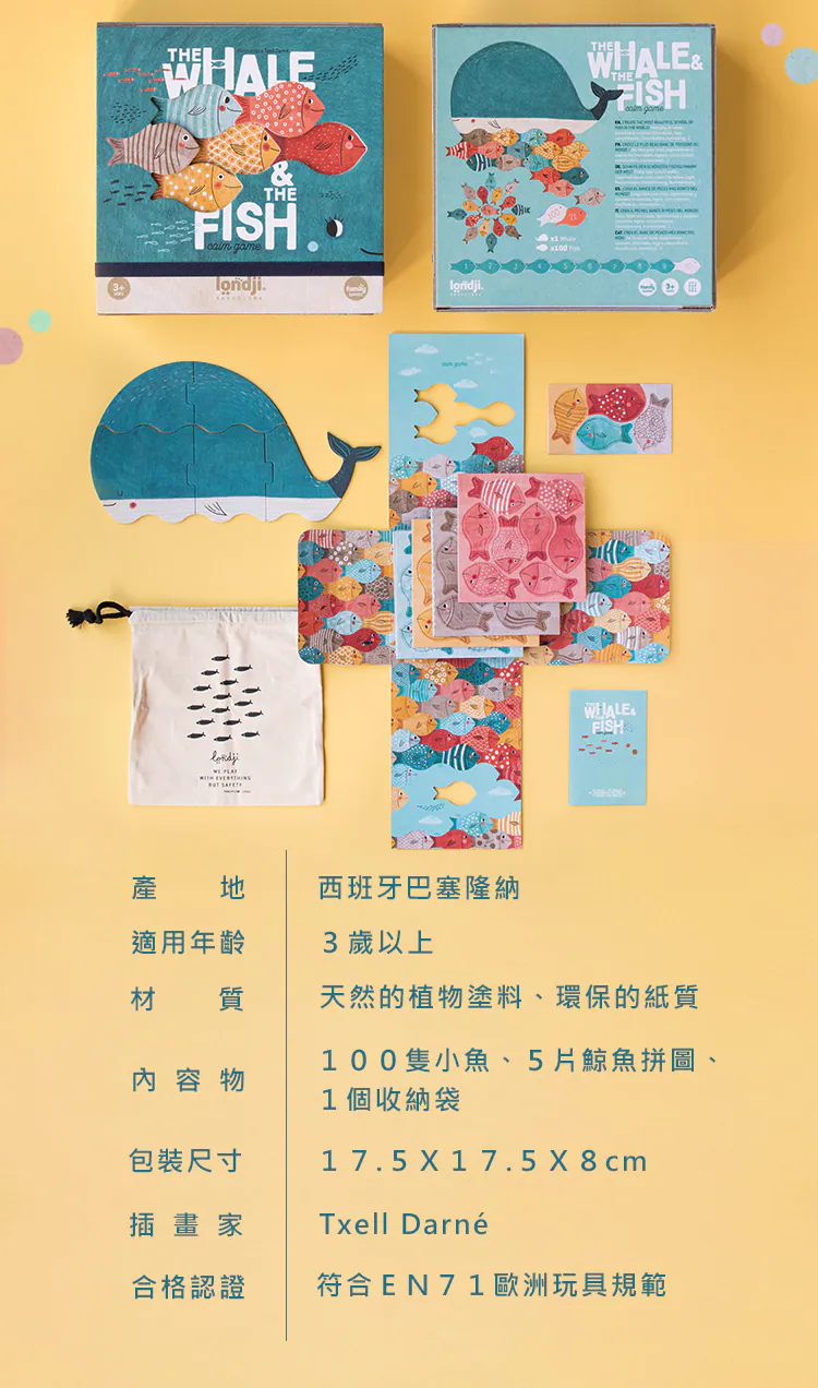 內容物 100隻小魚、5片鯨魚拼圖、1個收納袋