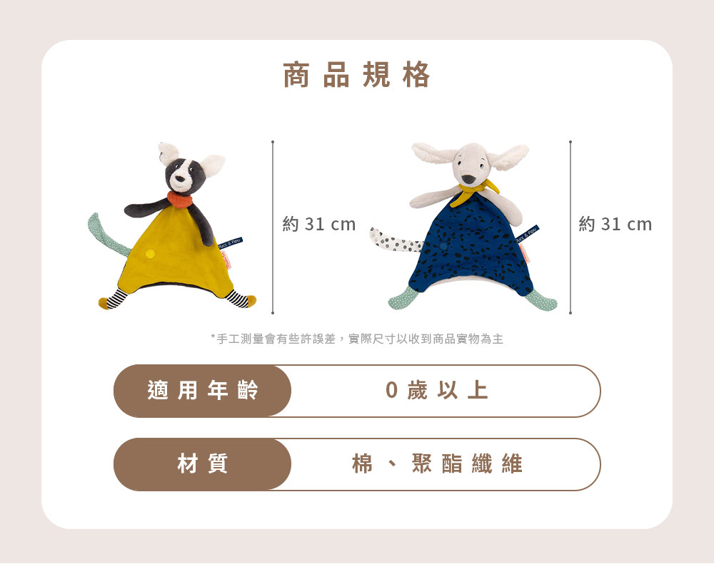 小尾巴處有魔鬼氈,可夾奶嘴。