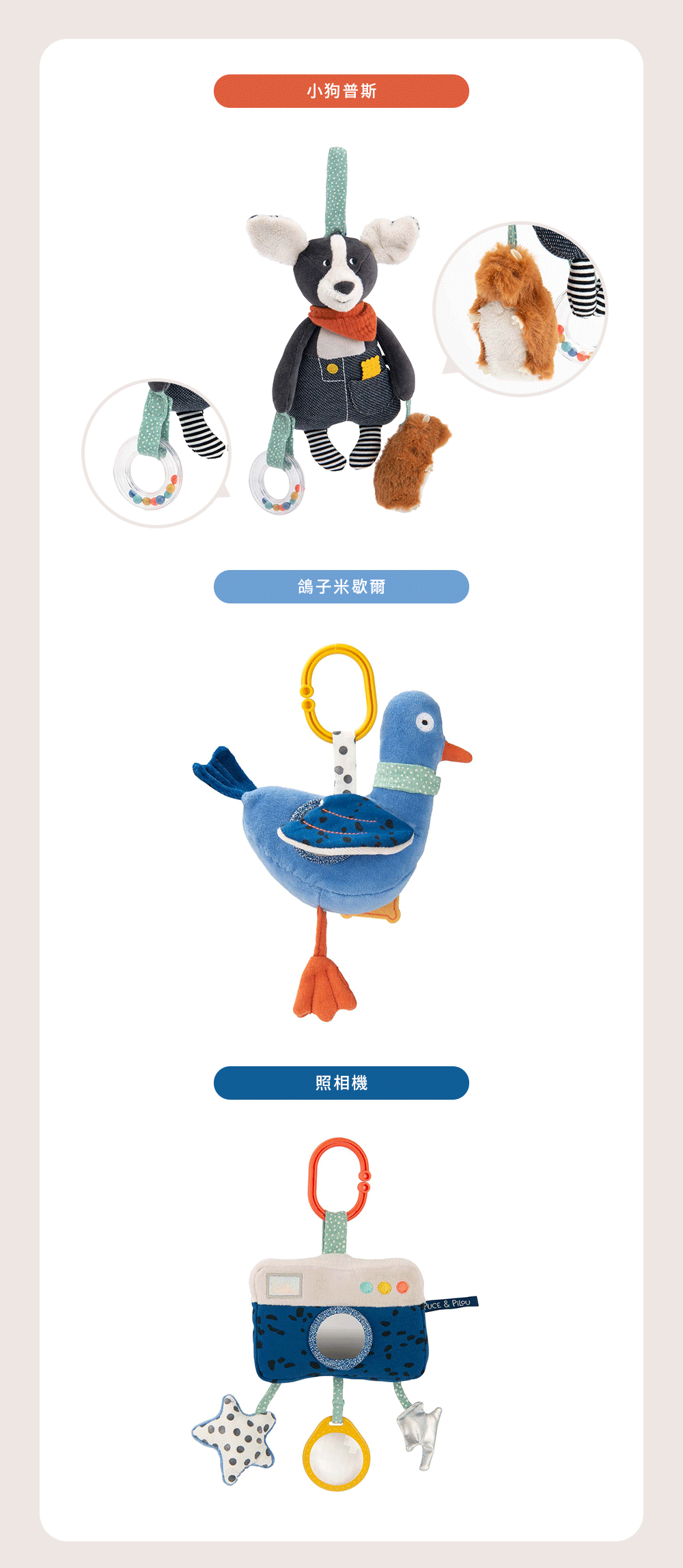 Moulin Roty |城市裡的小狗好朋友系列多功能懸掛玩偶 - 鴿子