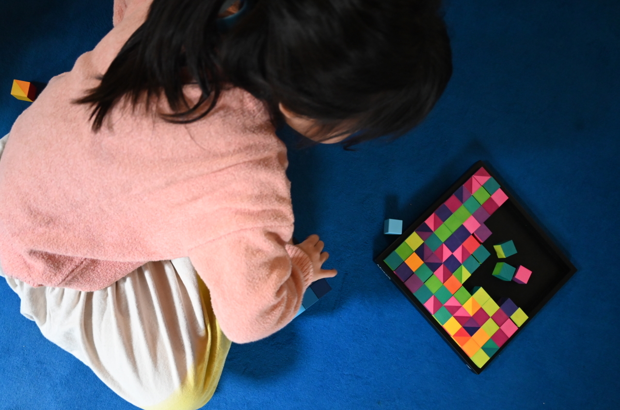 Mosaik由原本是幼稚園老師的Kathrin Kiener所設計,這款圖騰積木由36件2.5cm的立方體組成,