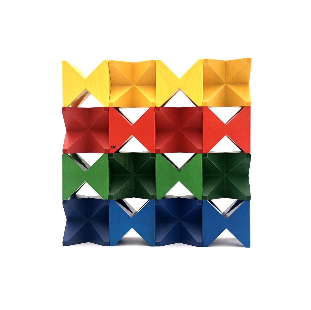 特殊的楔形結構設計讓 naef 經典積木之間能夠有絕佳的楔合度,更讓這款積木只要兩塊就能夠有多達12種的組合方式,