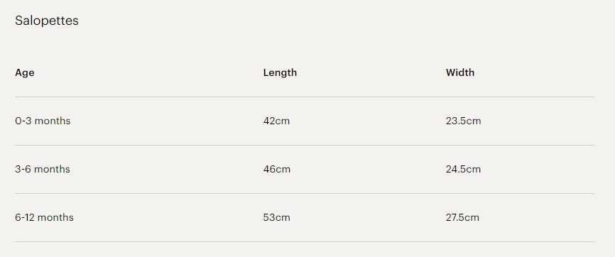 0-3 m : 適合大多數出生後 3 個月的嬰兒。如果想要更多的成長空間,可以選擇大一號。