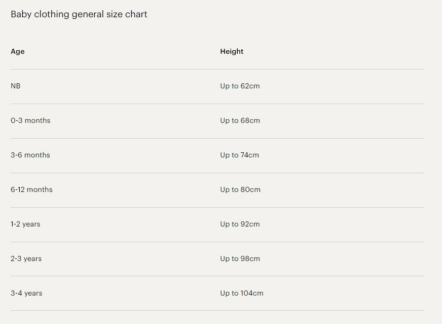 0-3 m : 適合大多數出生後 3 個月的嬰兒。如果想要更多的成長空間,可以選擇大一號。