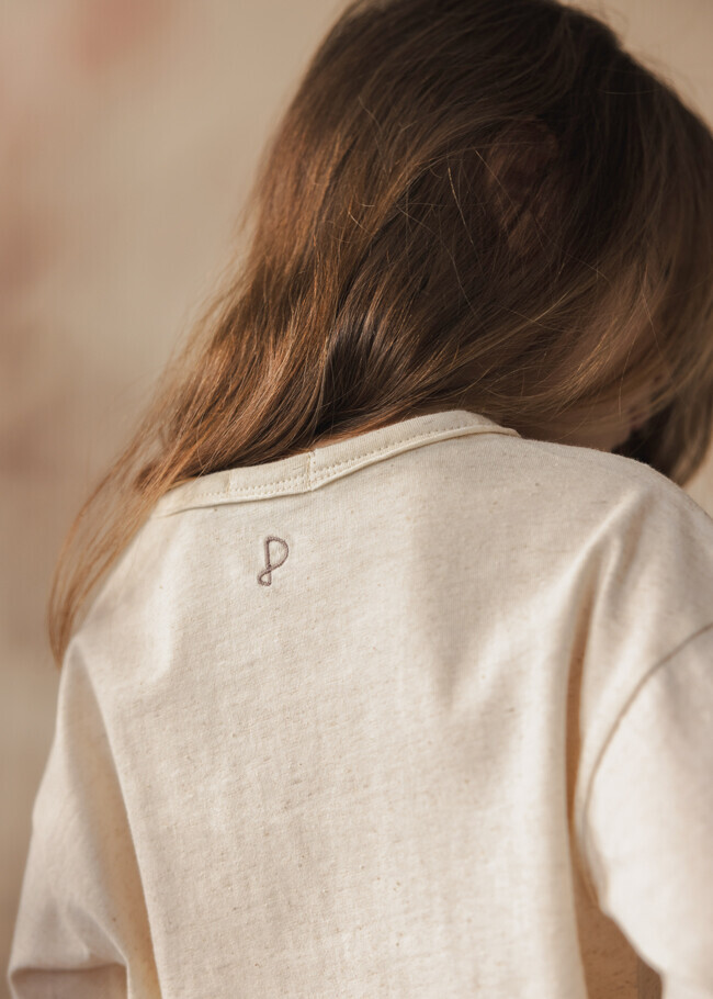 標準尺寸。拍攝照片中的小模特兒穿著比平常大一號的尺碼,以營造寬鬆的輪廓。