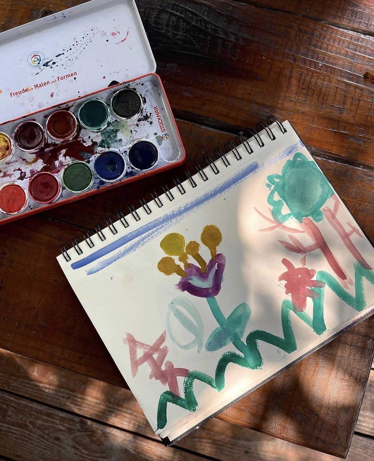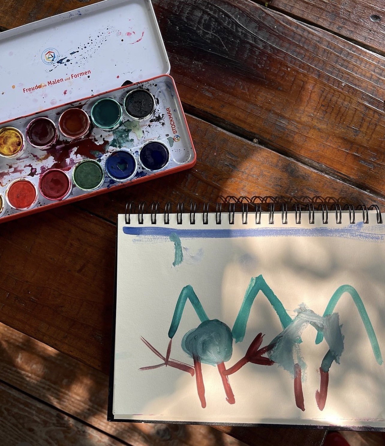 濃縮水彩盤方便攜帶,露營時也能隨時拿出來畫畫,紀錄當下景色。