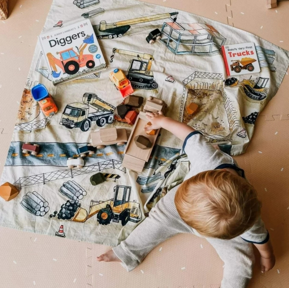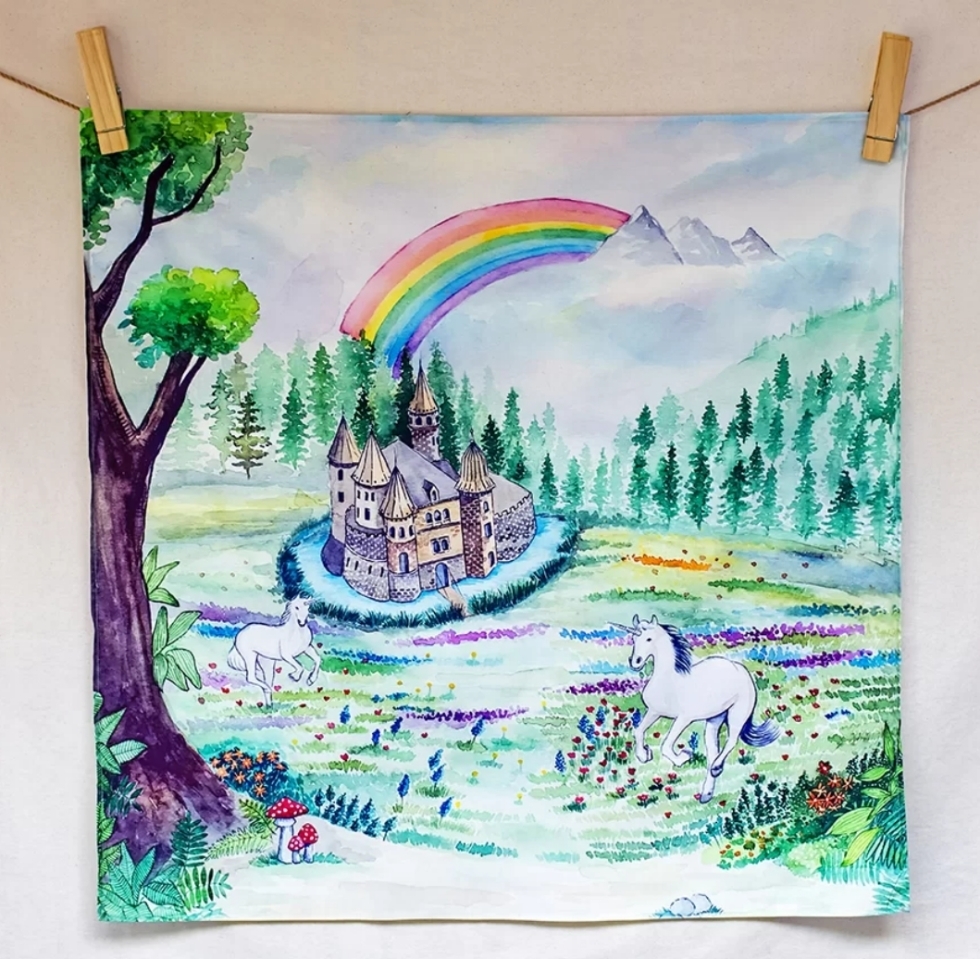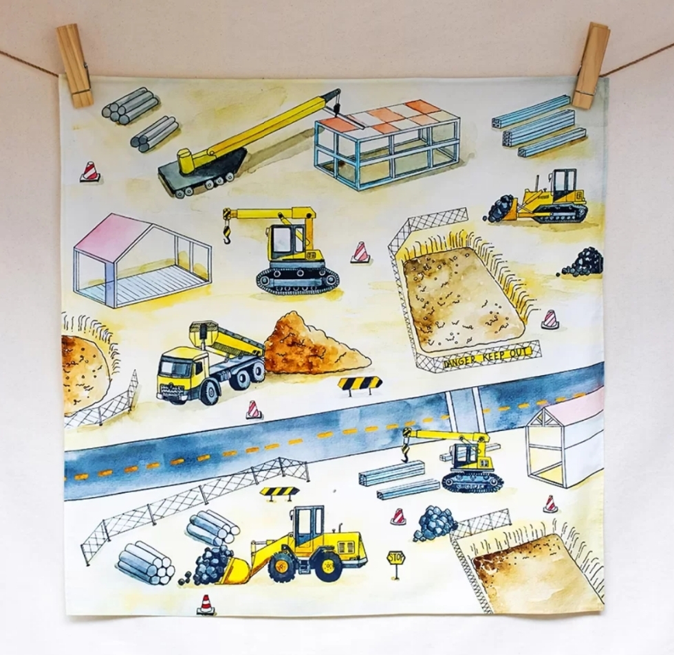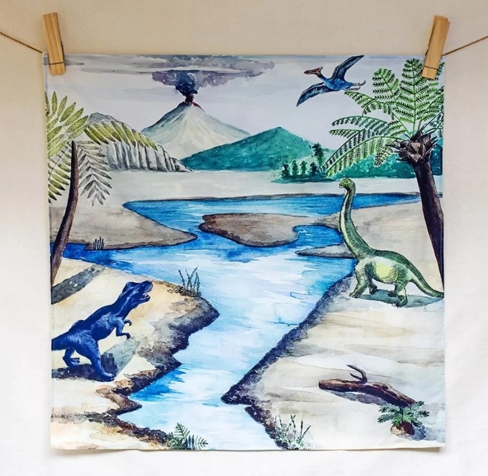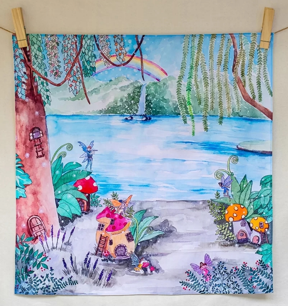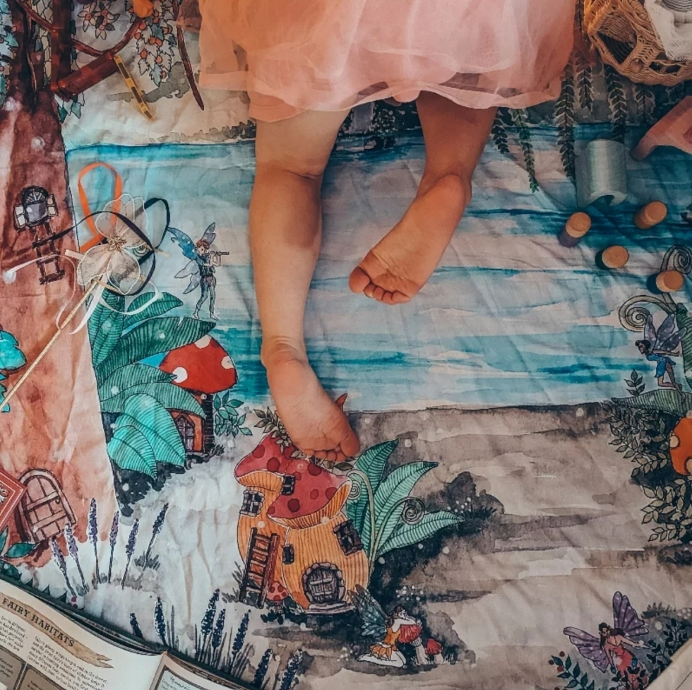 手工繪製有機棉場景遊戲布,以無毒水性顏料繪製而成。