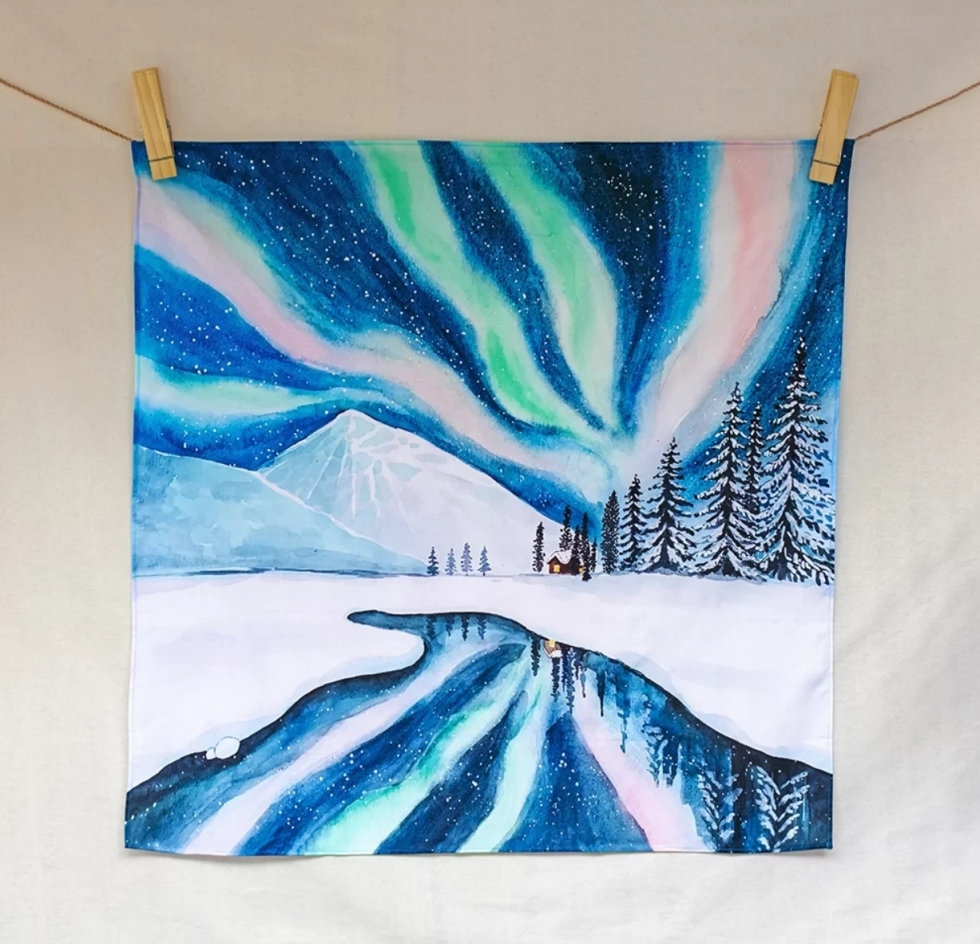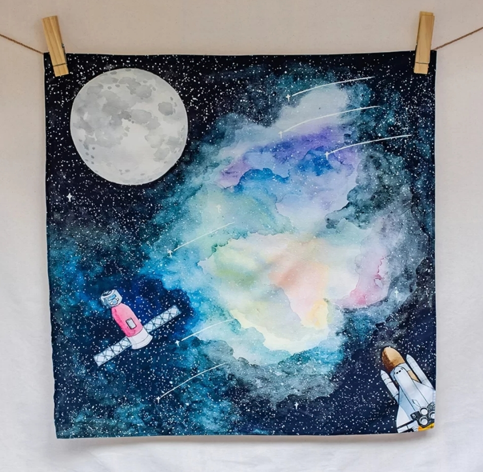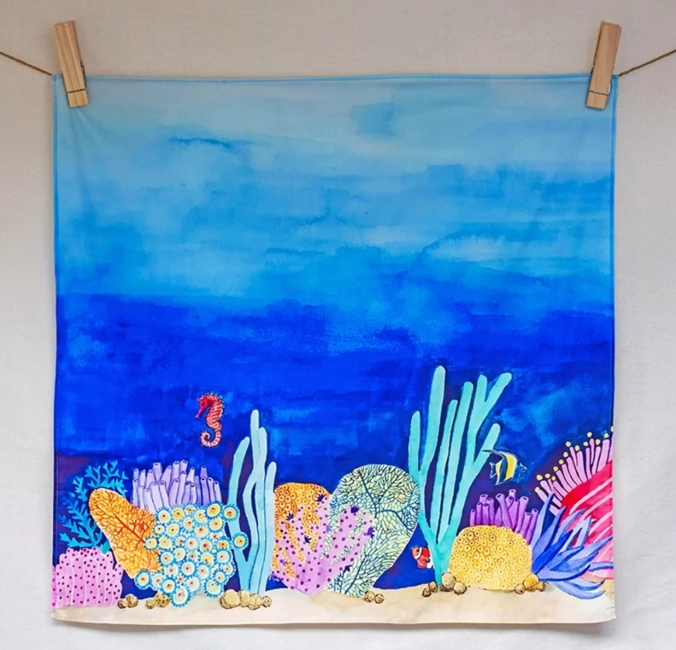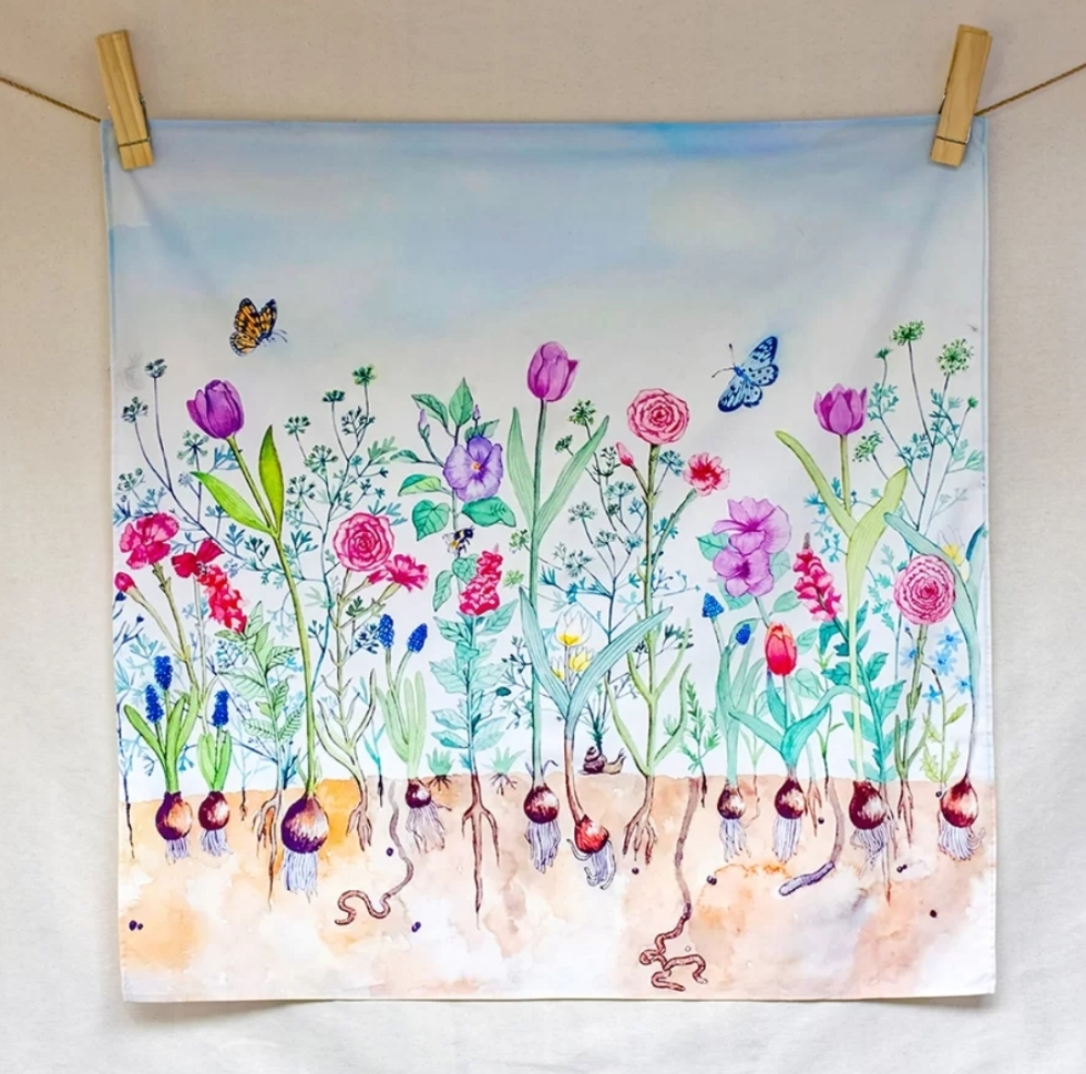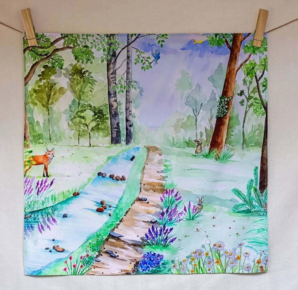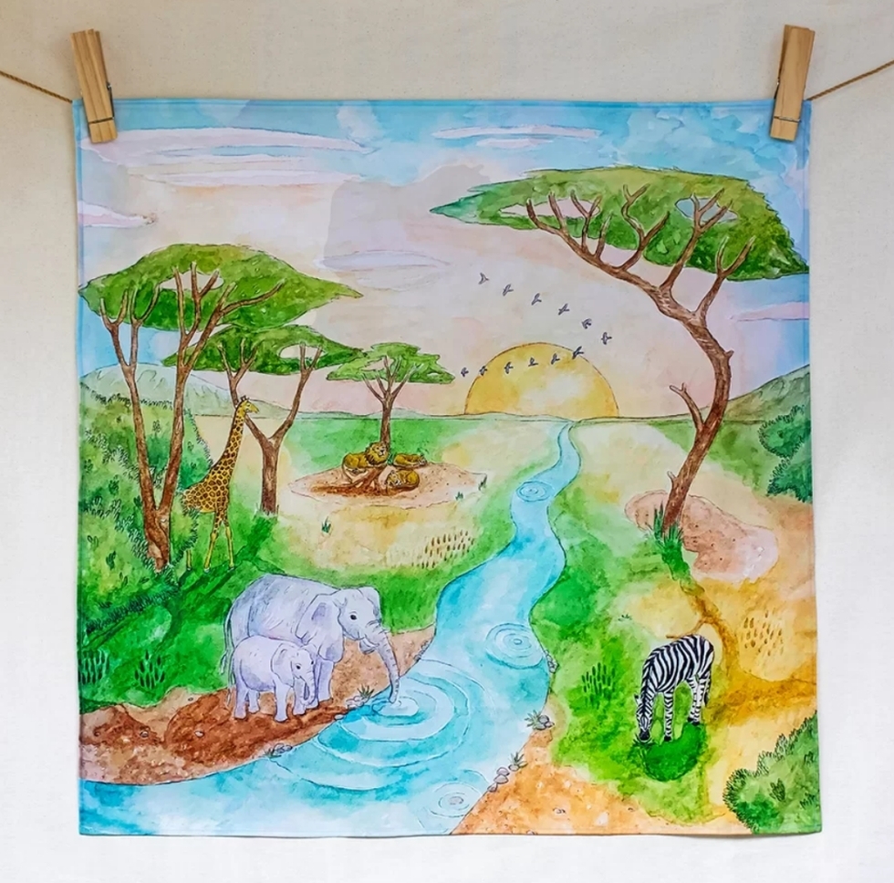 Each design is lovingly hand-illustrated with water-colours and then printed onto the cloth. They are proudly produced in partnership with a fully ECOCERT certified textiles producer committed working with eco fabric solutions.