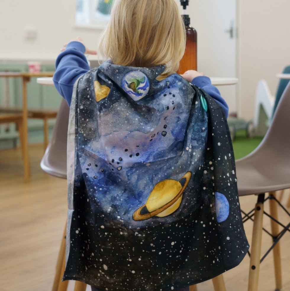 從小世界玩耍到搭建秘密基地、裝扮到包裝禮物,孩子們可以和它一起跳舞、讓它隨風飄揚、綁在棍子上、當斗篷穿,甚至掛在牆上作為一件裝飾品。