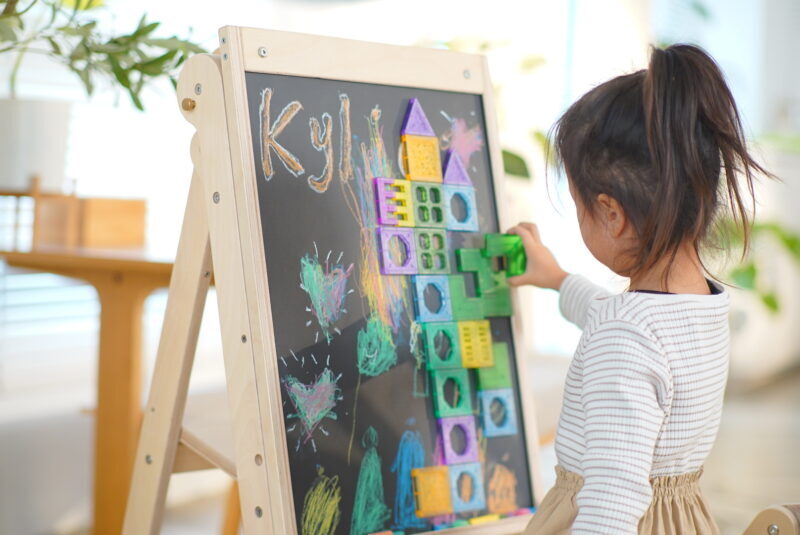 雙面超大塗鴉面積搭配無塵粉筆使用,磁吸+筆架功能一次滿足,讓孩子自由創作、爸媽輕鬆陪伴。